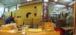 First, the restoration of a Spitfire which has been going on with mainly volunteer help since 2007. The wing and fuselage had been totally dismantled and stripped and repainted and were undergoing replacement of all 25,000 magnesium rivets which have become a corrosion risk. The fuselage looked like it was brand new and you can see every piece of the wing strung up on a clothes line waiting to be reattached.