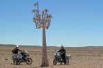 We are well and truly into Namibia now – one of the least densely populated countries in the world. Nothing for miles. For large stretches we could imagine ourselves in any semi-arid desert environment, like riding in Death Valley, and the temperatures have topped 100F every day. Every stop we drink heavily to avoid dehydration and then pour water inside our riding suits so the evaporation gives the next best thing to air conditioning.