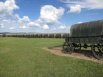 Today, there are two memorials. One formed by 64 identical wagons cast in bronze representing the scene and celebrating the trekker victory. In the far distance there is a red-roofed building which is the Ncome Museum that was opened in 1999 to offer a Zulu “re-interpretation” of the events.