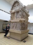 Here you can see what Payava’s Tomb looks like in Turkey today – with Peter Sommer holding the book – and what it looks like rebuilt with the top and side friezes abducted by Fellows filled in with carved limestone. Much more stunning is the Nereid Monument which is a temple tomb from the same site. One side of the tomb is reassembled but the rest of the room contains all the pilfered pieces; absolutely amazing. No wonder there was nothing to see at Xanthos itself; every damn stone is here.