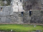 The other two photos: two preservationists cleaning Machu Picchu with toothbrushes, I kid you not, and war clubs that were in current use by the Incas when Pissaro showed up. (From the excellent Museum of Precolumbian Art in Cusco)