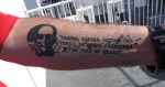 Case in point, meet Nigel and Paul from Wiltshire who I met on the ferry leaving Douglas. They’ve got sportbikes at home and have been to the TT many times but decided that this year they’d go cold turkey and give it a miss. Well how did that work out? Like most addicts, not very well. Two days before the racing they decided they had to go, they got foot passenger tickets on the ferry from Heysham, drove 250 miles to get there, landed on the island with no accommodation, and spent three days sleeping on the floor of the ferry terminal in order to see the races. That’s the pull of the Isle of Man TT. Then there’s Alan from Carlisle with the Hunter S. Thompson tattoo who hasn’t missed the TT in years. There are thousands of stories like this. I met folks from Limoges and Munich and Sidney and everywhere in Europe and the UK who had ridden impossibly overloaded sportbikes just to be HERE and camp by the TT course this week.