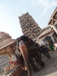 At the Virupaksha Temple at Hampi each morning the elephant god Ganesh blesses the temple in the form of, well, an elephant of course who is marked with the three chalk marks of the blessing by Krishna. At the end of his perambulation he stopped at the top of the sacred ghats from which people were bathing in the river and offered his blessings to those who fed him a banana or offered money. It was amazing to see the faithful stand before Ganesh with a small cash offering held out low with the left hand. The elephant would delicately take the money in the tip of it’s trunk, whisk it backwards to the handler who pocketed the cash almost invisibly while the elephant pendulumed his trunk back and gently laid it upon the worshipper’s head for a few seconds of blessing. A very moving but slick commercial operation.