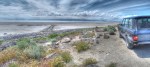 Many people make the 25 mile detour off I-15 through Salt Lake City to visit the Golden Spike National Historic Site; the place where Leland Stanford drove the final spike to create the first transcontinental railway linking the Union Pacific and the Central Pacific railroads in 1869. But 20 miles of easy dirt road further on, and totally without any signposts indicating that it is even there, is Robert Smithson’s Spiral Jetty reaching out into the Great Salt Lake; one of the most beautiful pieces of outdoor and natural art in America.