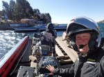 To get from the customs entry point near Copacabana, Bolivia to the capital La Paz, you have to cross a narrow part of Lake Titicaca on a fleet of independently operated barges that carry every size of vehicle – riding big bikes onto a lurching barge and then getting off backwards is one of the most unique challenges so far. Yes that is small look of panic on my face as we crossed while the barge was flexing.