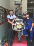At MotoAventura, Thomas and Mauro did a fantastic job to get an oil change, new tires, oil and air filters all done in an hour. Both are motorbike fanatics – Mauro is from Santiago and showed up on the most immaculate Honda sportbike I’ve seen and Thomas is German who moved here a few years ago with his Chilean wife. In the background is a poster of the Motorex oil we are all using for this trip.