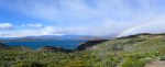 When we crossed from Chile to Argentina, west to east, the wind was howling. Here is Lake General Carrera that spans the border with the permanent snow, rain, and rainbows rolling over the mountains in the west and leaving cloudless skies and gales in the east. The plants in Chile are pines, ferns, and grass with cattle grazing. In Argentina, any plant that ever stuck its head up over a few inches has been clipped by the wind and the process of natural selection in this hostile desert ecosystem. The animals we saw were hares, guanacos, and armadillos.