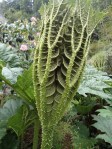 Nalca, known as Chilean rhubarb though it is not related to rhubarb, is unique to this area and is everywhere here. It is a prehistoric plant that evolved 150 million years ago in the late Jurassic so would have been familiar to the dinosaurs and Fred Flintstone, is adapted to the poor soil, and its size means it shades out any competition. It is crammed with nutritional goodness and the young shoots are eaten here peeled and dipped in salt or made into jams.