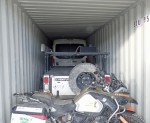 We spent the morning collecting all our stuff and dealing with the documentation required to send it all home – inventory the baggage, hand in the temporary import paperwork for the vehicles, check the boxes, genuflect in front of officials. Then two containers arrived, we loaded everything, and made sure it was all strapped down tightly before one more official visit and the lead seals were added to the doors.