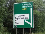 Talking of long words. The place with the longest name is, unsurprisingly, in Wales. The village of Llanfairpwllgwyngyllgogerychwyrndrobwllllantysiliogogogoch is by the Menai Strait in Anglesey and, again unsurprisingly, the name does not fit well on road signs as shown here. The name is pronounced “lan-vire-pool-guin-gith-go-ger-u-queern-drob-ooth-clandus-ilio-gogo-goch … and … translates roughly as “St Mary’s Church in the Hollow of the White Hazel near a Rapid Whirlpool and the Church of St. Tysilio near the Red Cave”.”