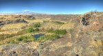 Dry Falls was once the largest waterfall in the world – with 400 feet of water plunging and tearing a path south across a rim many miles long. Now here we have Dry Falls Lake looking down the coulee towards Ephrata.