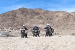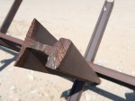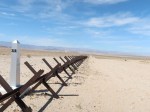 Photos from the border between Calexico and Jucumba Springs in Southern California. Border fence from Border Monument 225 to where the road just dead-ended into the mountains – Evan being apprehended with border surveillance station behind him – vehicle fence made from welded Victorian era rails stamped 1903 – Wall made from Vietnam era landing pads with newly added razor wire and Border Patrol agents in their vehicles under an awning every mile or so.