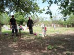 The Jackson Chapel is in San Juan, a suburb of McAllen, and its attached cemetery has been a burial ground for the indigenous Carrizo Indians for millennia before Europeans swept through here. The stones now show largely hispanic graves and there is a small area for veterans from WWI onwards. Today there is a large group of volunteers from the local community and other native American tribes camped in solidarity and ready to resist any construction that might occur. They made us very welcome in explaining what was at stake here and the photographs show the levee right at the back of the graves that would carry the fence and isolate or destroy this site.